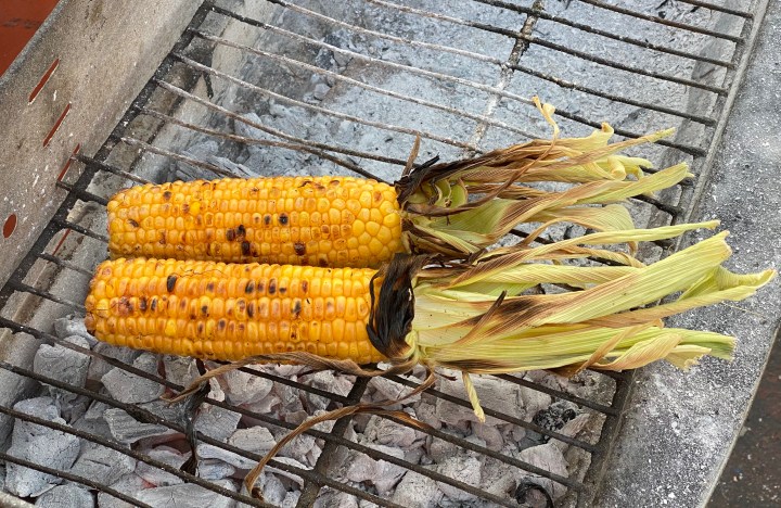 The corn is done if it is slightly charred.