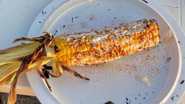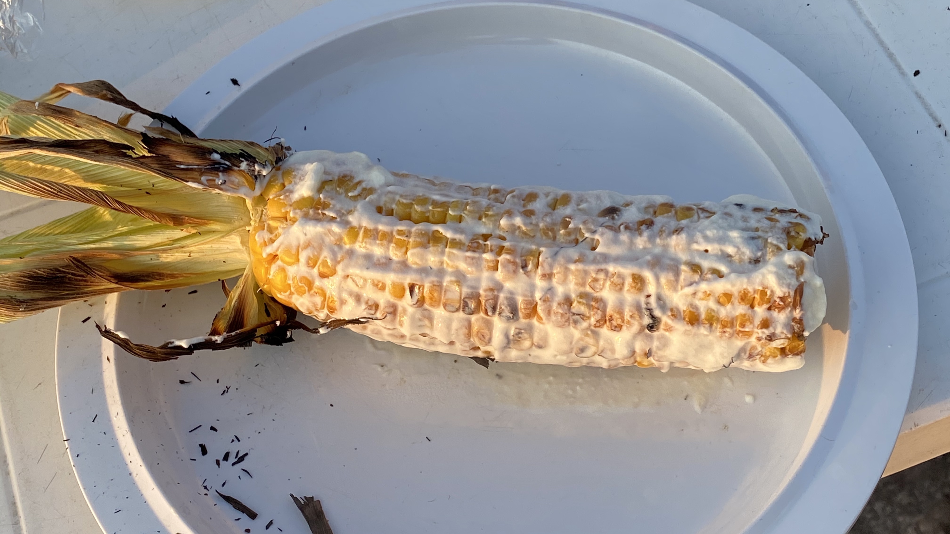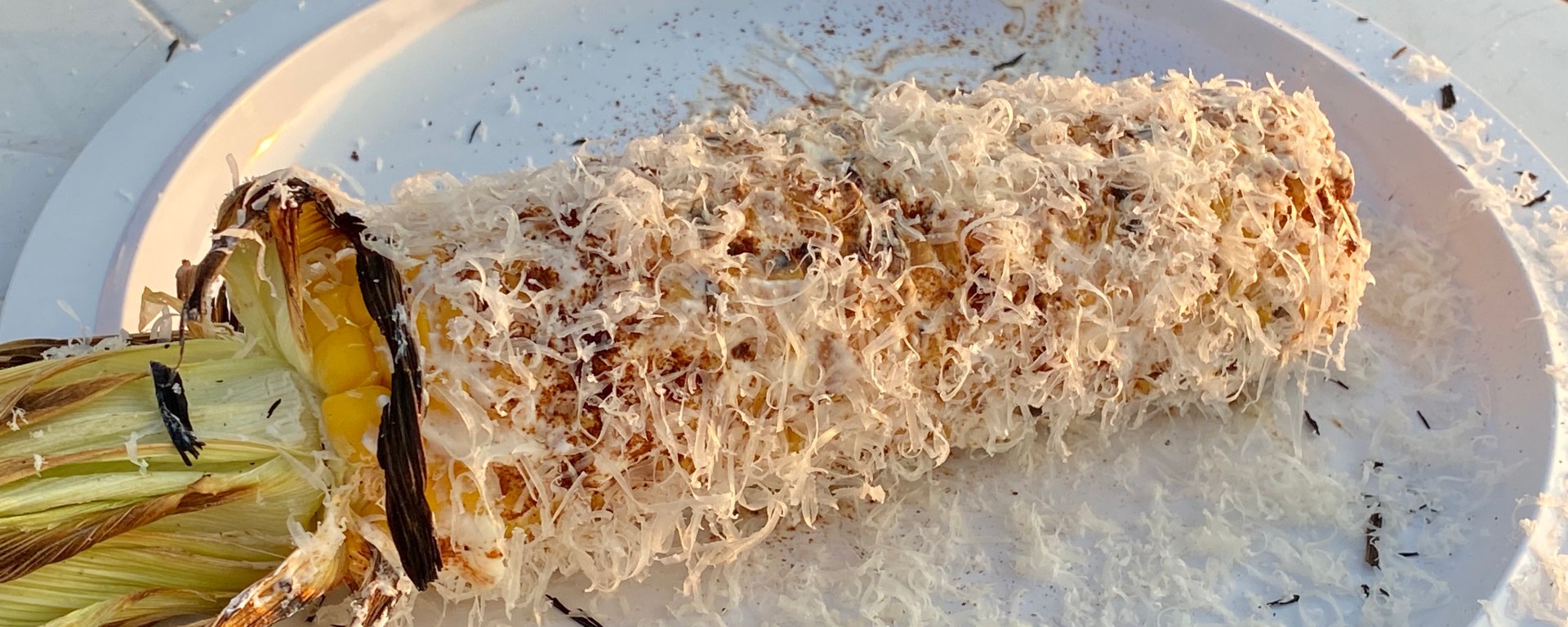 My favorite way to eat grilled corn. We often skip the cheese, and it is spicy mayo which plays a major role for us.
