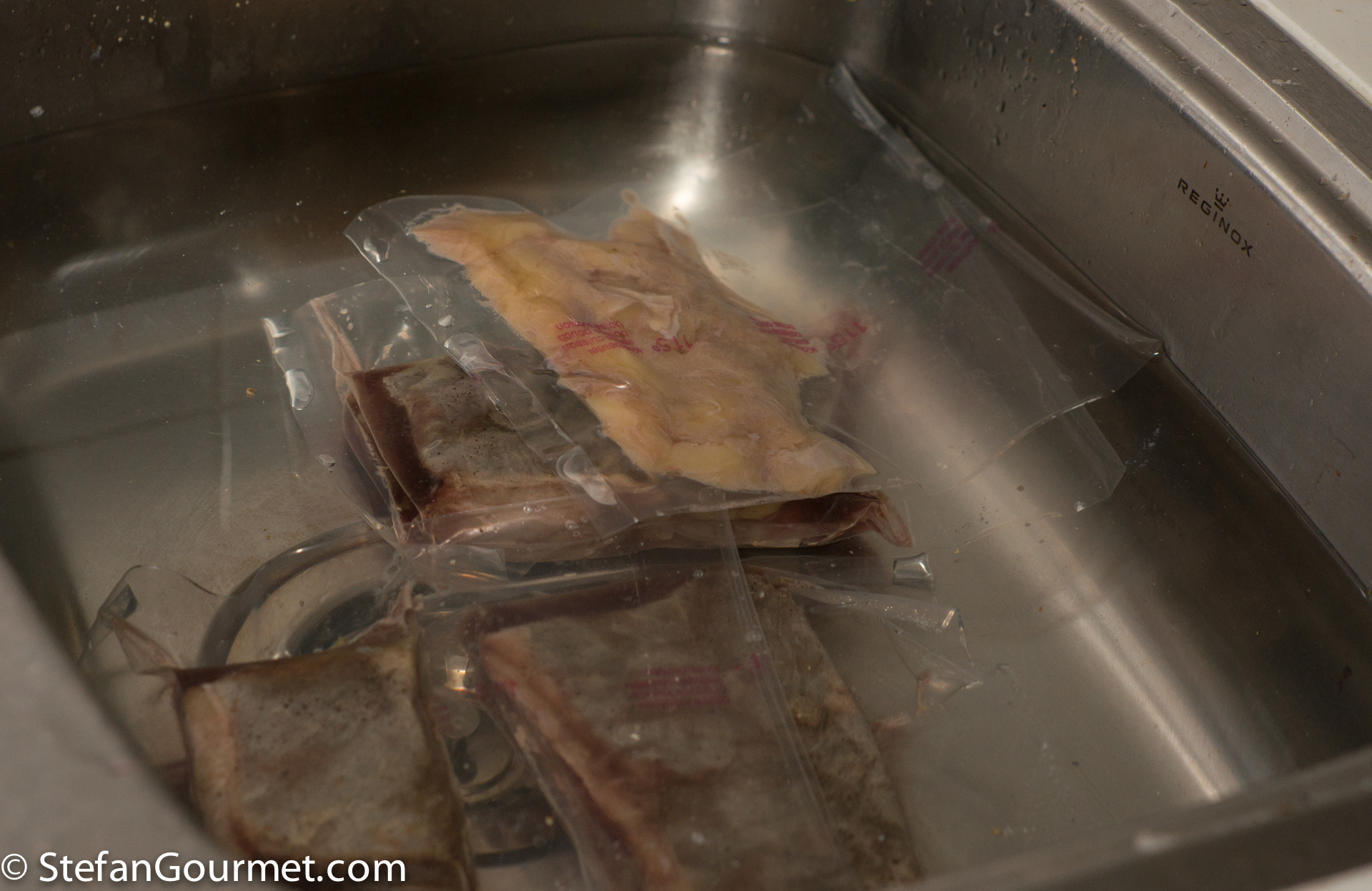 …and then vacuum sealed it. I also vacuum sealed the fat, as cooking it sous-vide extends its shelf life. Later I will render the fat from it and use it to sear steaks.
