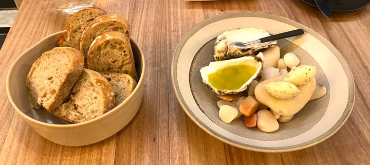 The presentation of the bread sets the expectation of what is to come. The salt and olive oil are served in an oyster shell, and instead of just butter there is butter with truffle and butter with yuzu zest. The bread itself is good (but not great) sourdough bread.