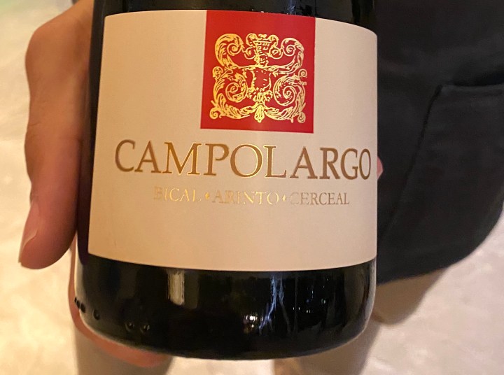 The first wine is a sparkling wine from Bairrada, made with the traditional method, of the Portuguese grape varieties Bical, Arinto, and Cercial. It has aromas of crushed apple and a good balance.