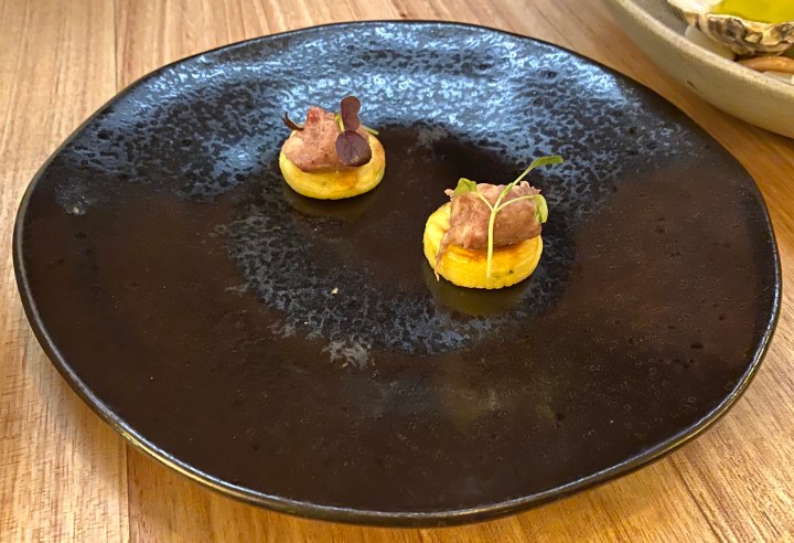 The amuse bouche was blini with bone marrow, freshened up with citrus.