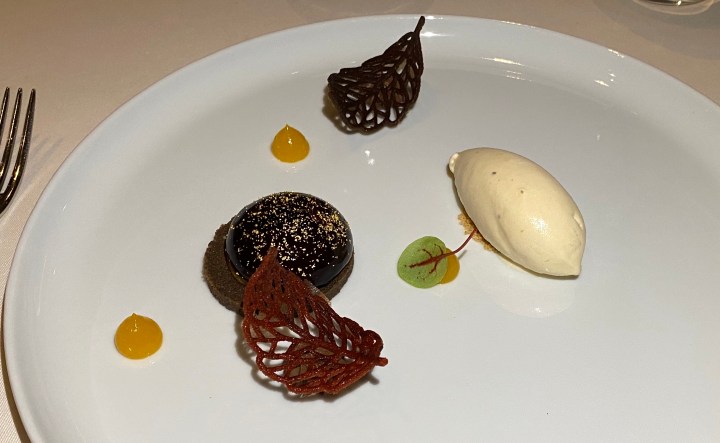 The dessert was chocolate and passion fruit with tonka bean ice cream. The passion fruit worked very well with the Madeira.