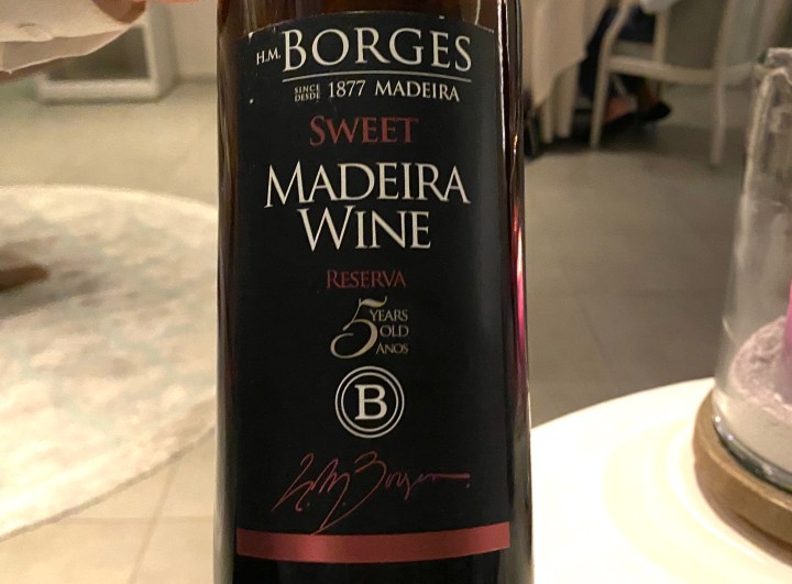 The dessert wine was a sweet Madeira. Madeira is always acidic and comes in 4 different levels of sweetness. This is the sweetest version, made of Boal.