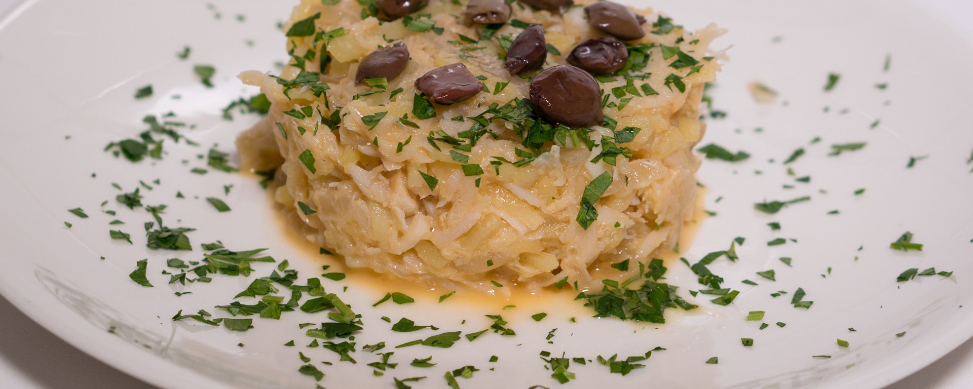 Serve, garnished with black olives and parsley. This is one of the few Portuguese dishes where parsley is used rather than cilantro, which would overpower the flavor of the bacalhau.