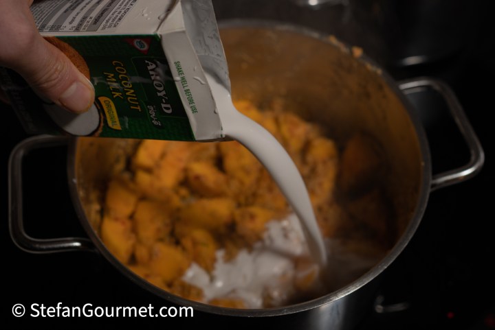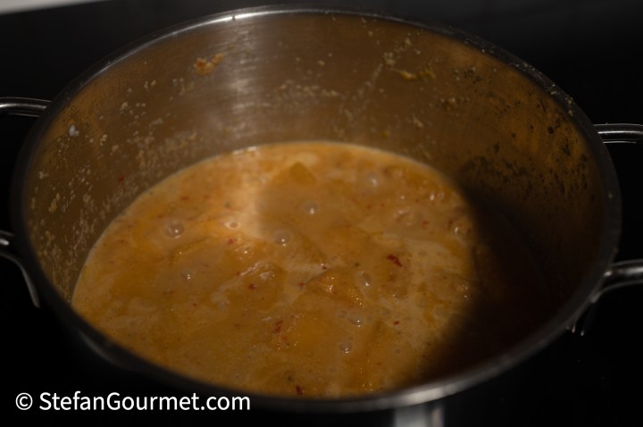 Stir for a couple of minutes over medium-high heat until the curry paste becomes very fragrant.