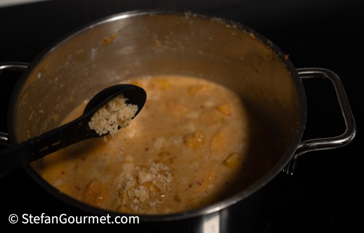 Cover and allow to simmer until the squash or pumpkin is tender (but not mushy). In my case this took about 20 minutes.