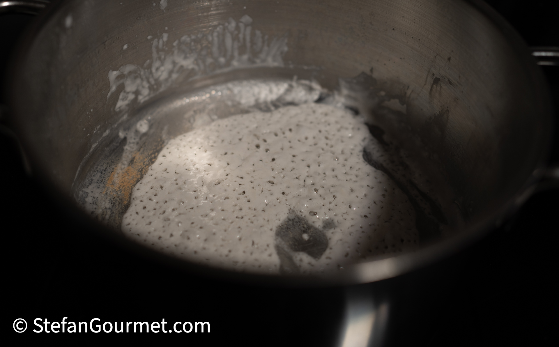 Heat the coconut cream over medium-high heat, stirring, until it starts to ‘break’.
