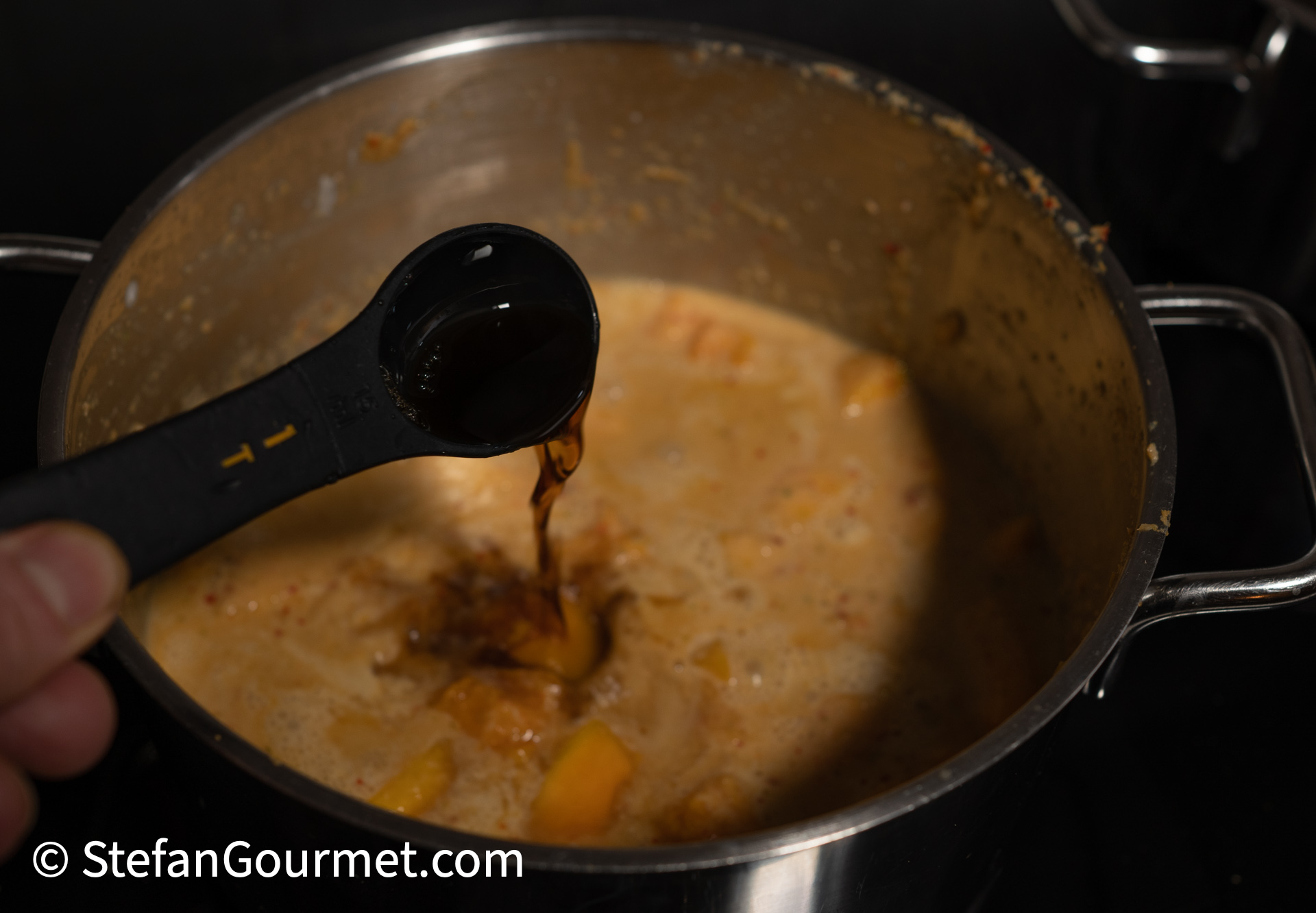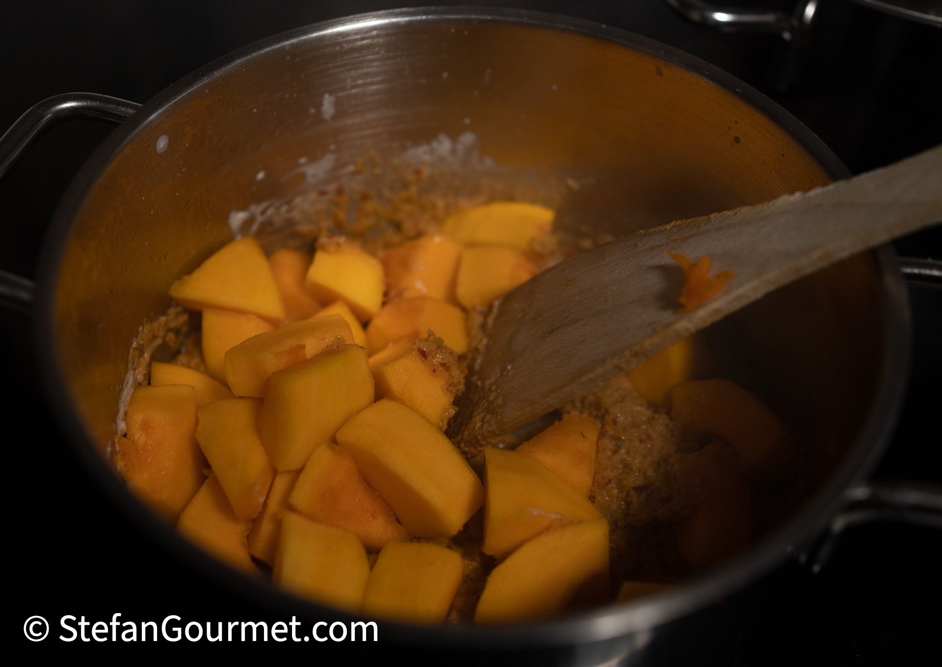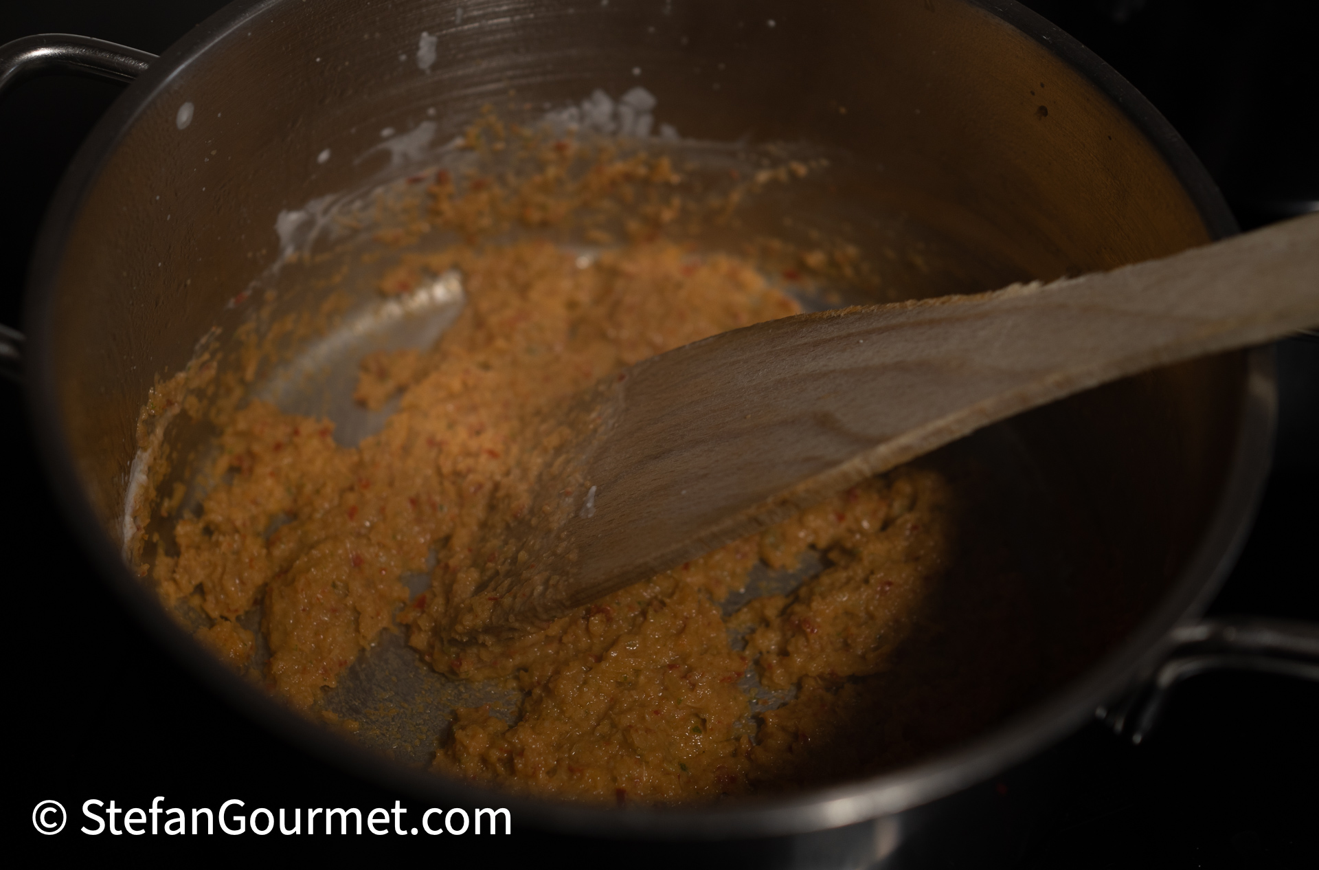 Stir for a couple of minutes over medium-high heat until the curry paste becomes very fragrant.