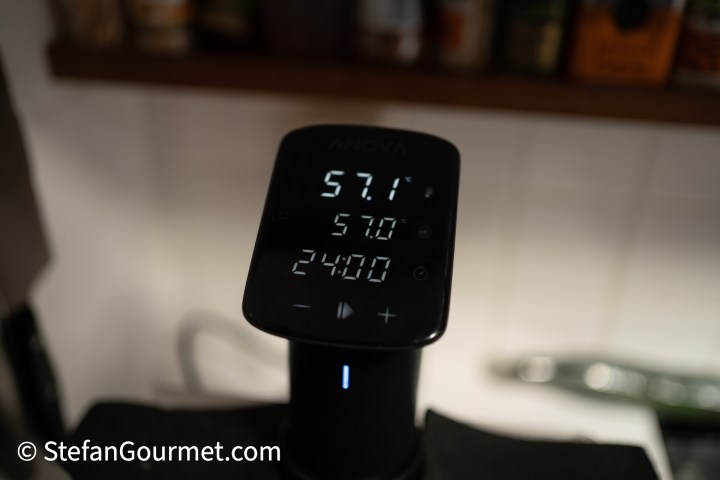 After cooking sous-vide, the stew can be chilled and kept in the refrigerator for several days (longer if your refrigerator is very cold) or frozen for months. Reheat for 1 hour at 57C/135F, or 2 hours if from frozen.