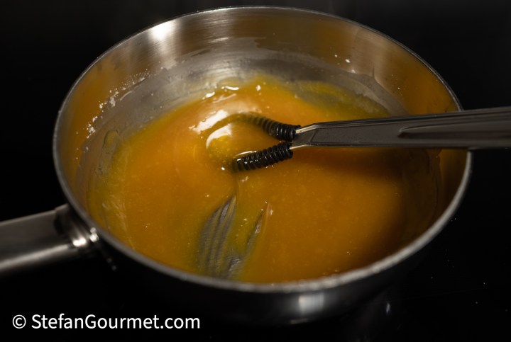 …until the sugar has melted and the jelly has thickened. Turn off the heat.