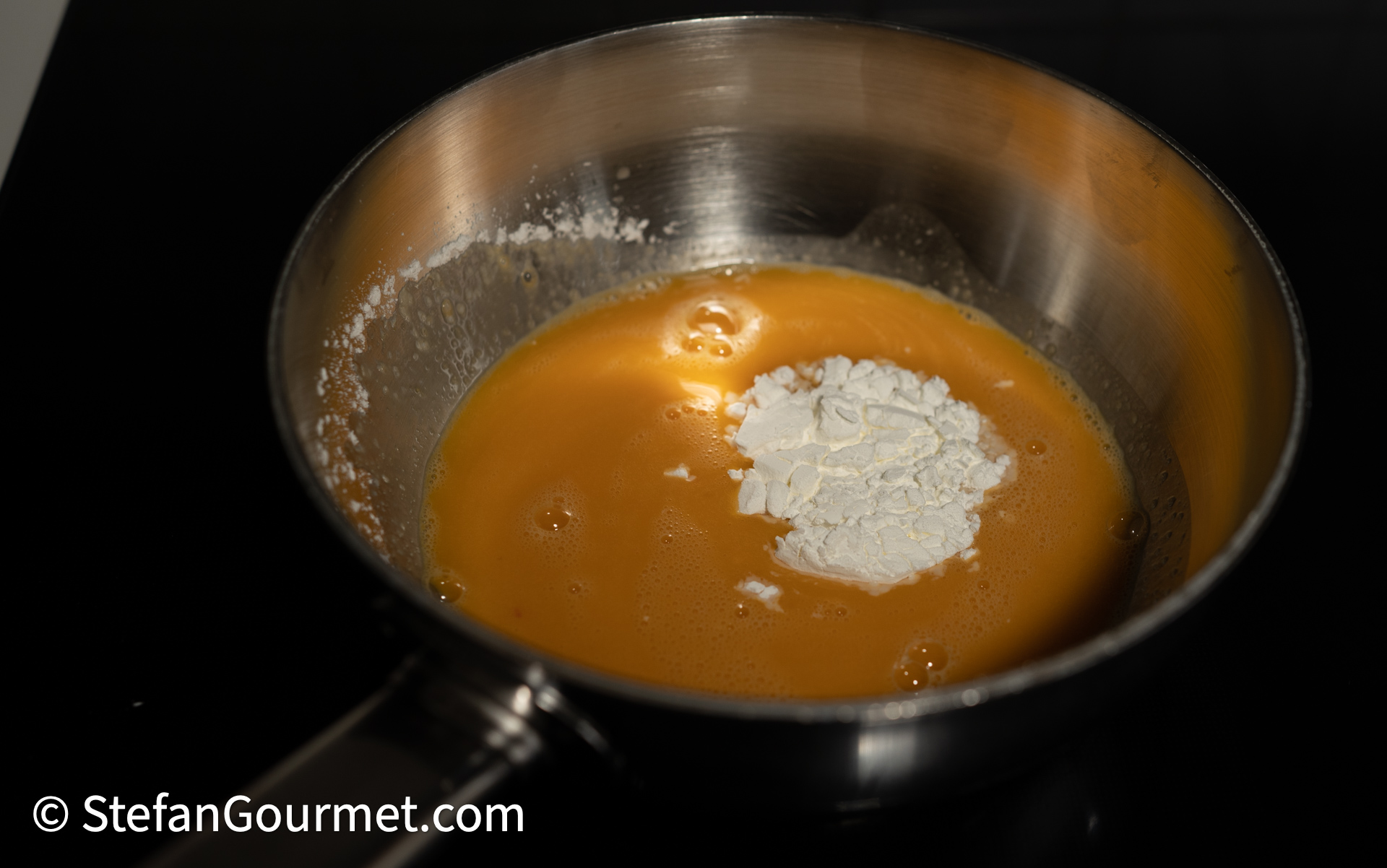 Put the passion fruit juice in a saucepan, and add the cornstarch.