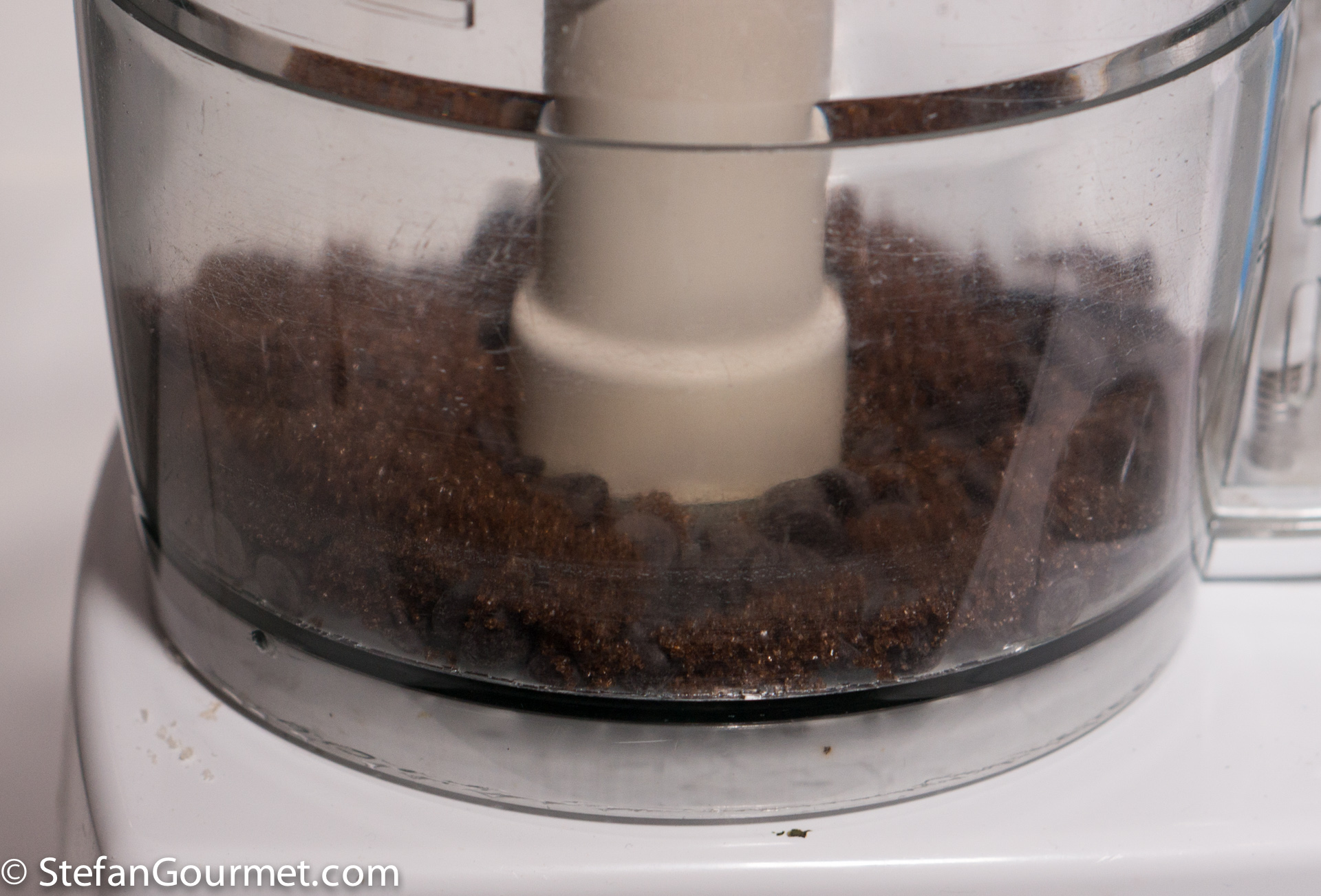 Preheat the oven at 180C/350F. Chop the chocolate and put it with the dark brown sugar in the bowl of the food processor.