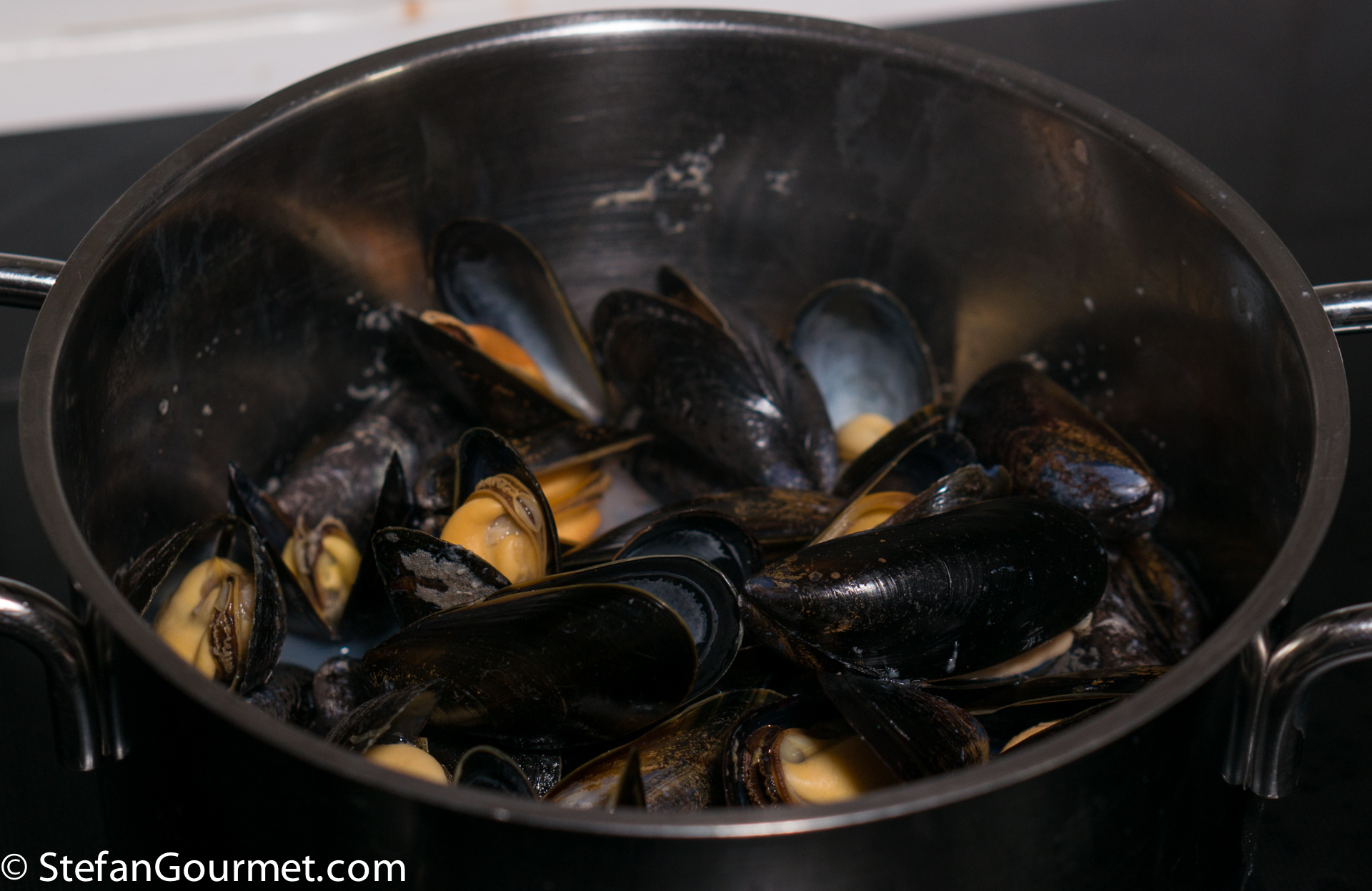 1/2 kilo (1 lb) mussels, cleaned