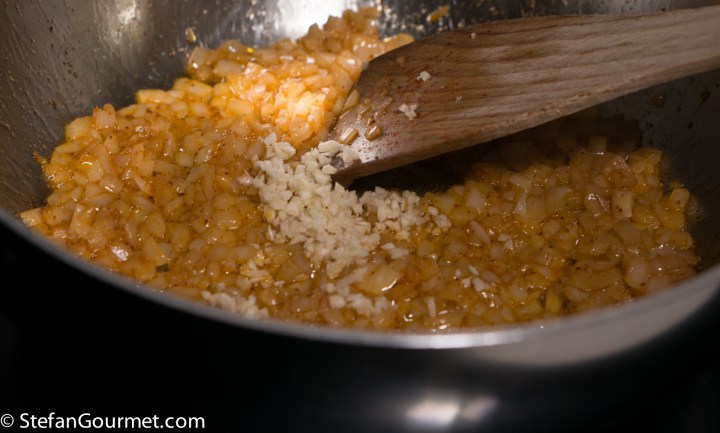Add 2 minced garlic cloves, and stir for another minute.