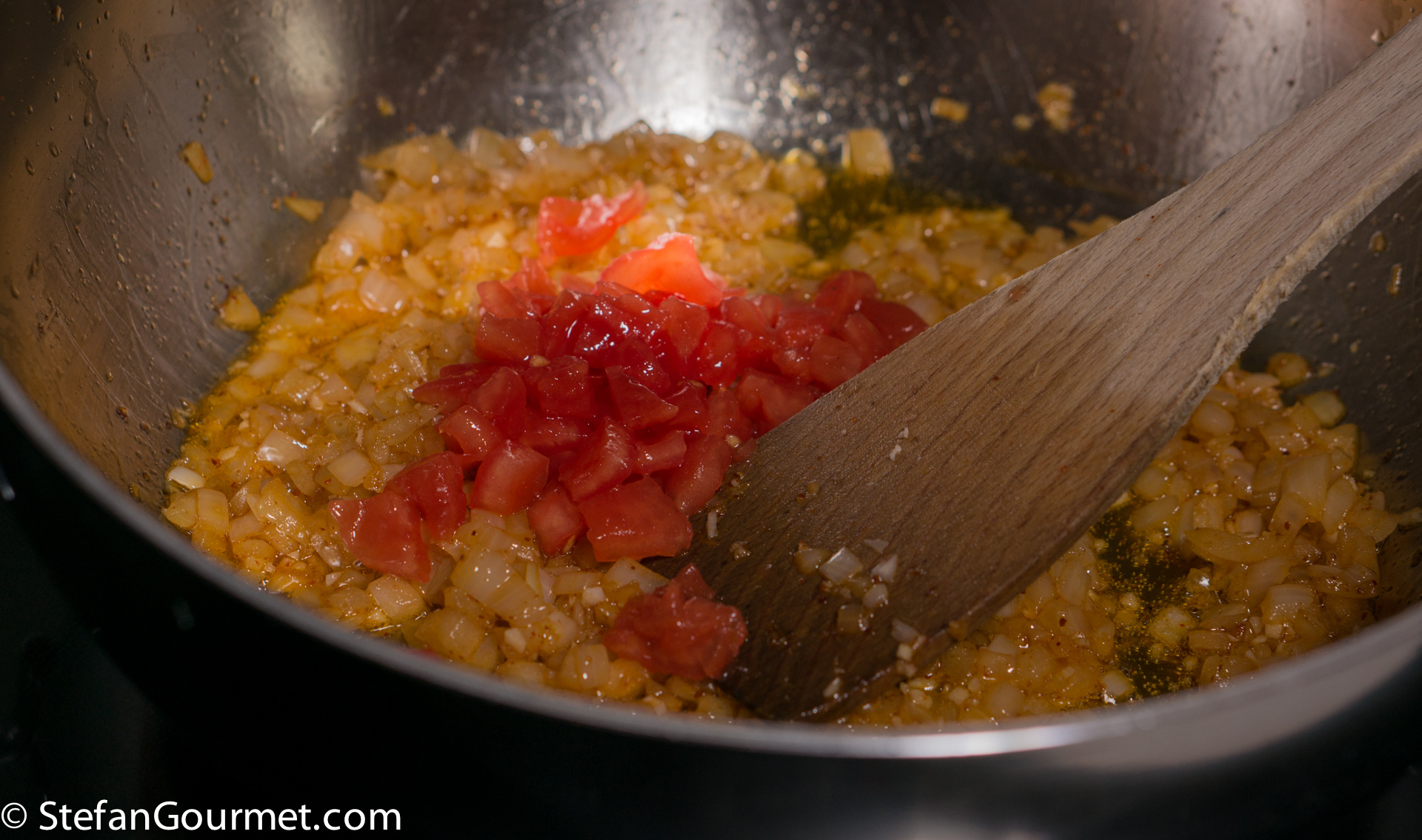 Add a peeled, seeded, and diced tomato…