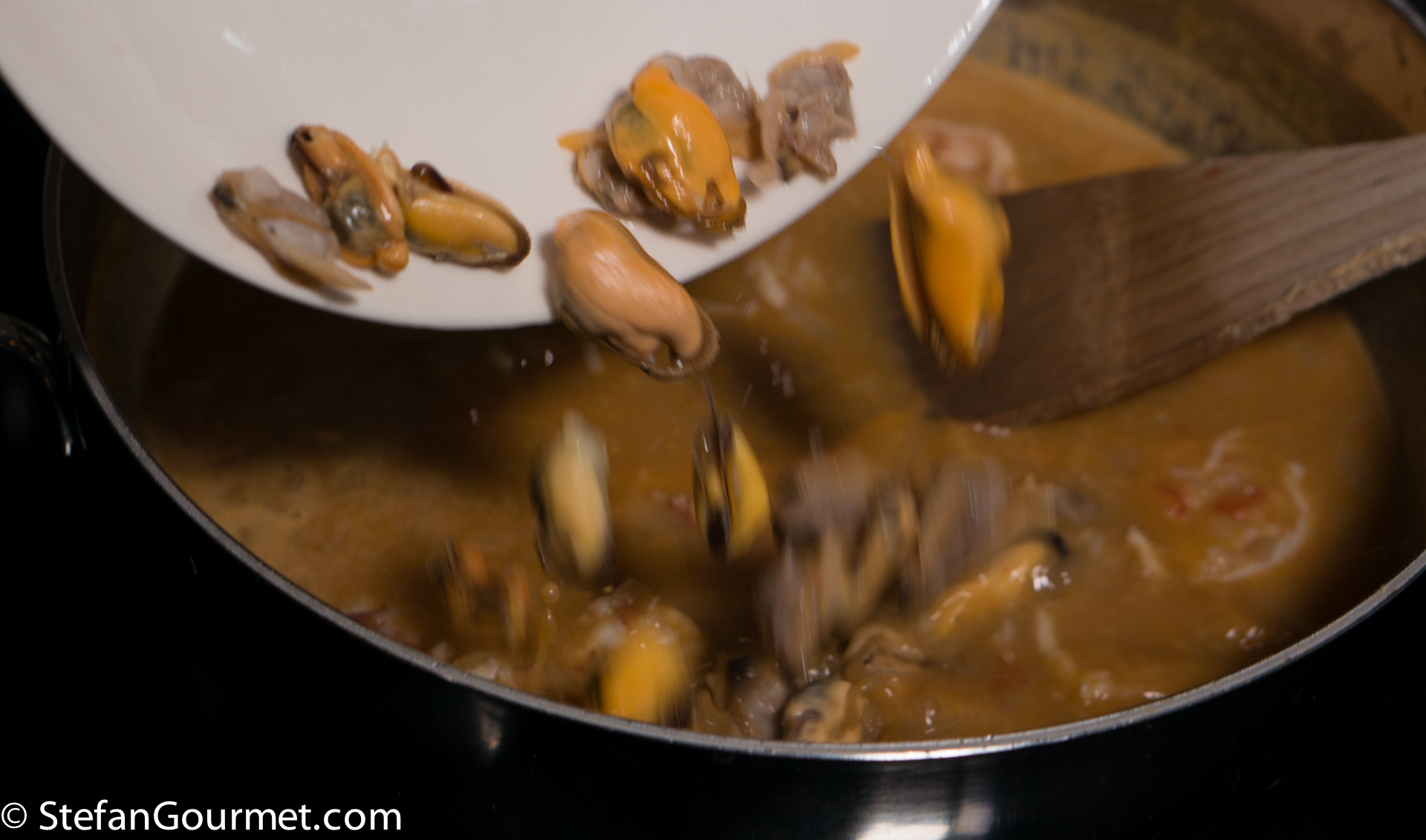 Add the clams and mussels to the soup…