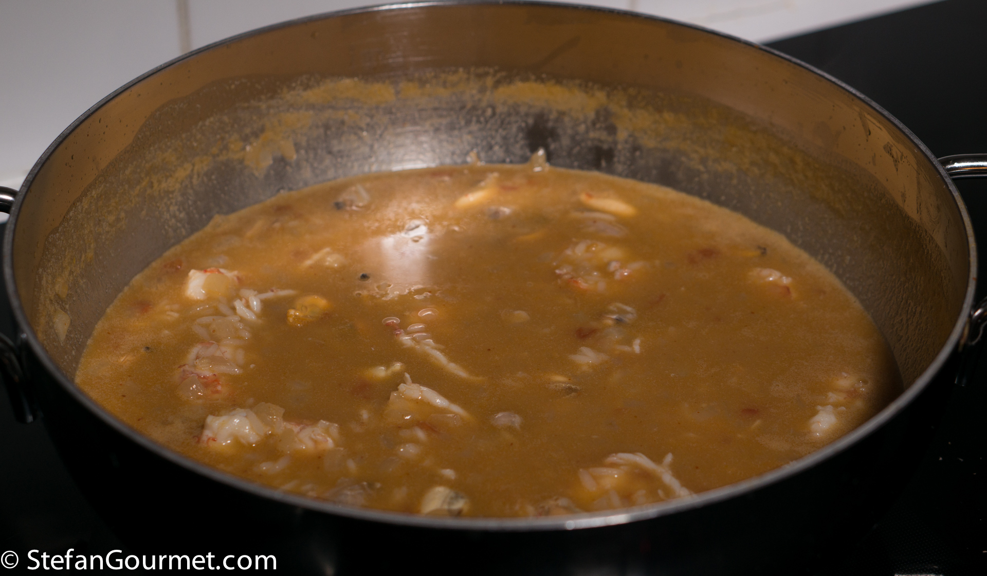 If using crab claws, add them 10 minutes after adding the rice.