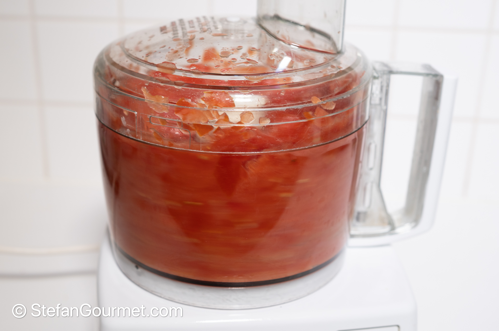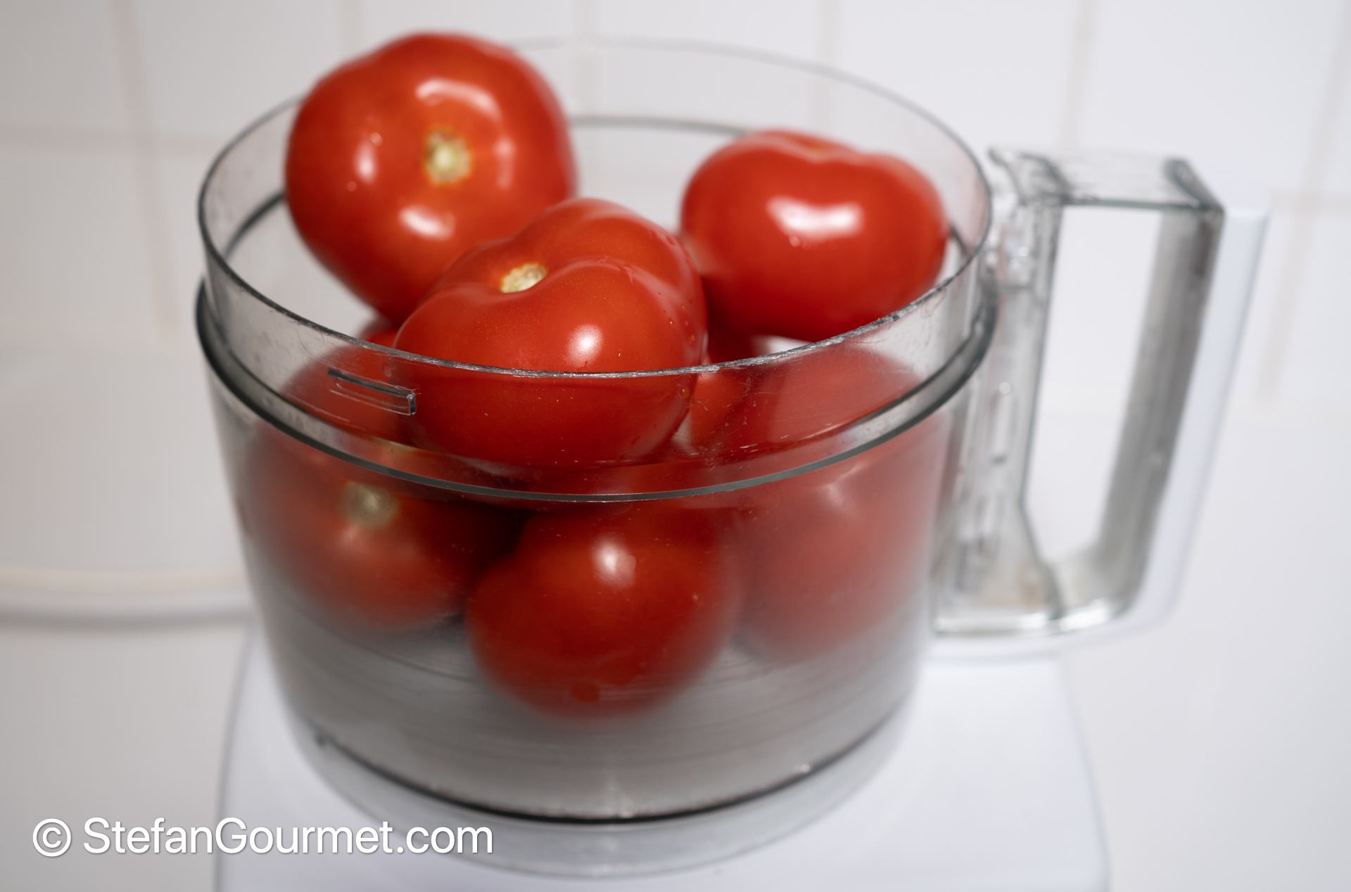 To make the tomato water, put a kilo of tomatoes in the blender…