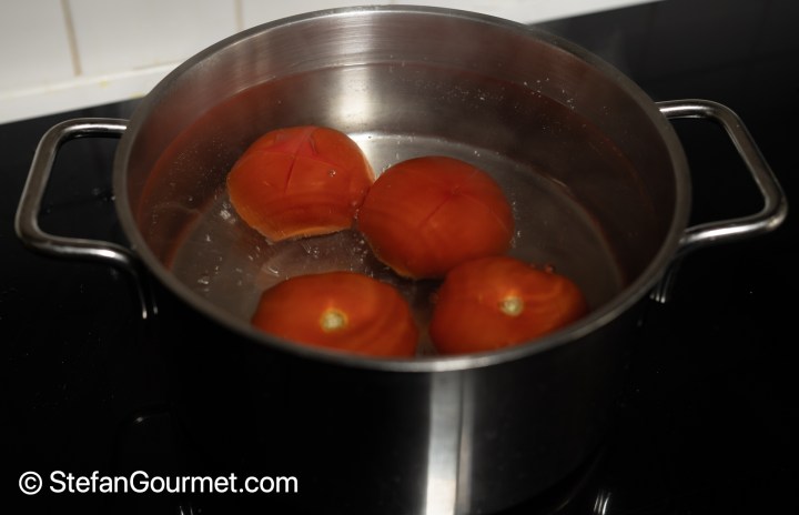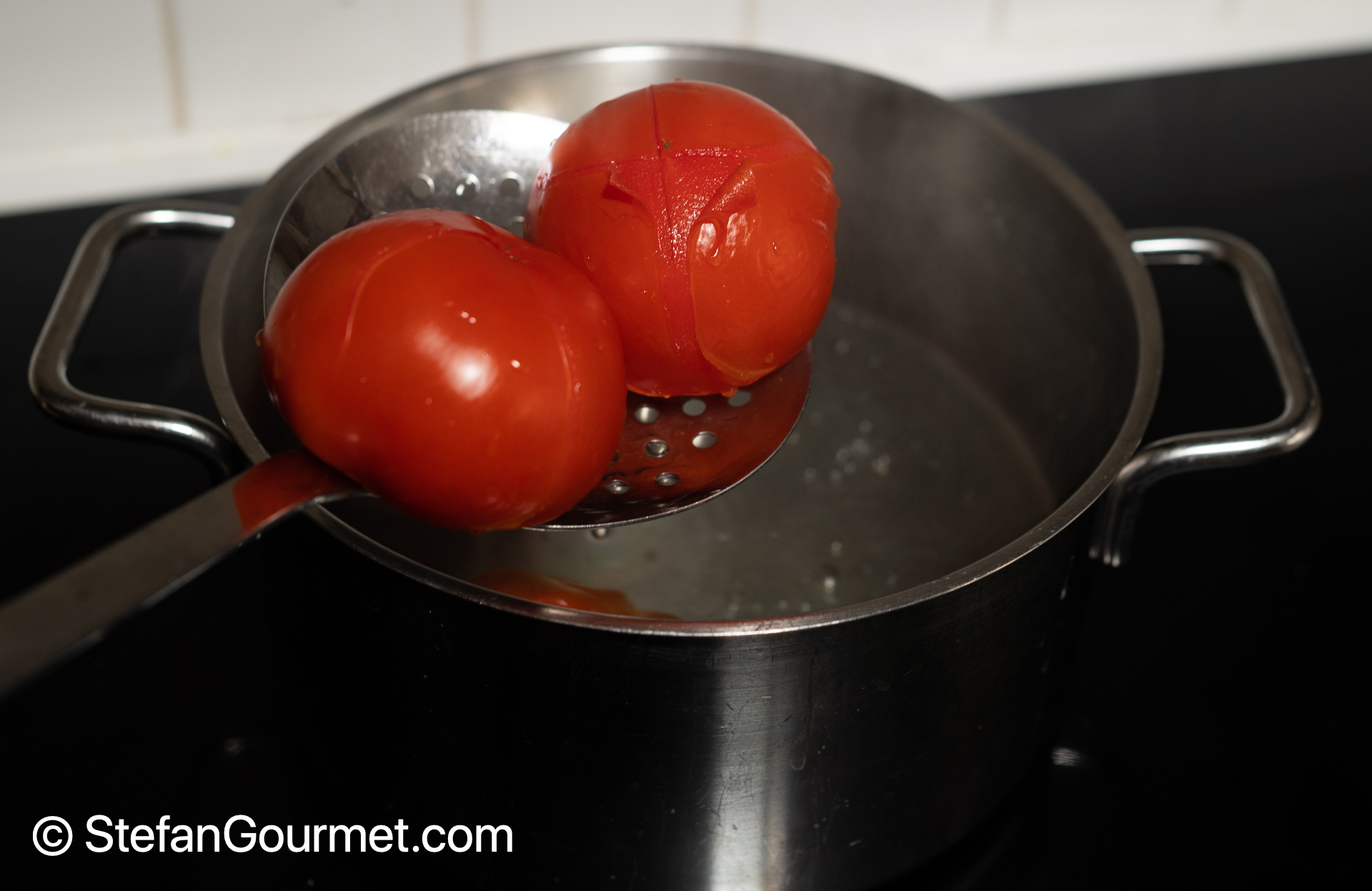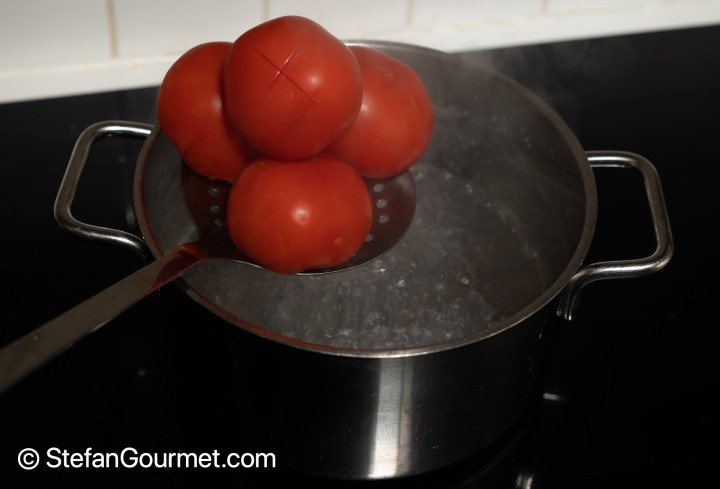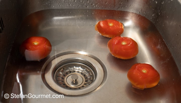 Lift the tomatoes out of the hot water as soon as the skin starts to split…