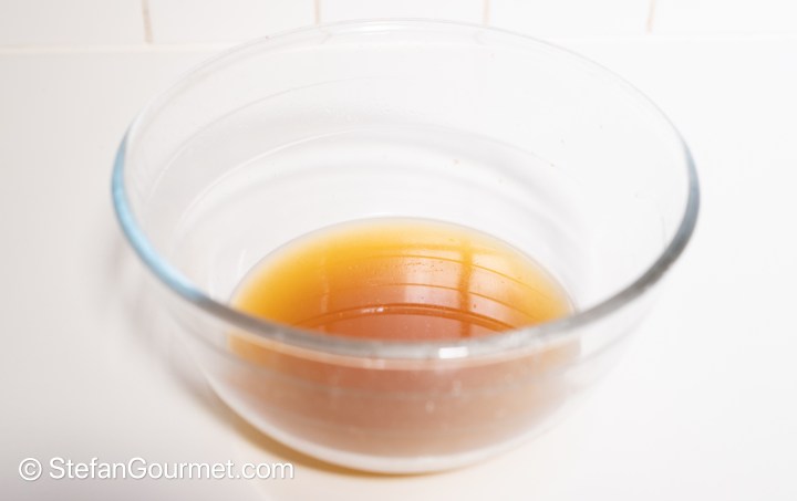 Taste and adjust the seasoning of the tomato dashi with salt. (You could also use a bit of Japanese soy sauce.)