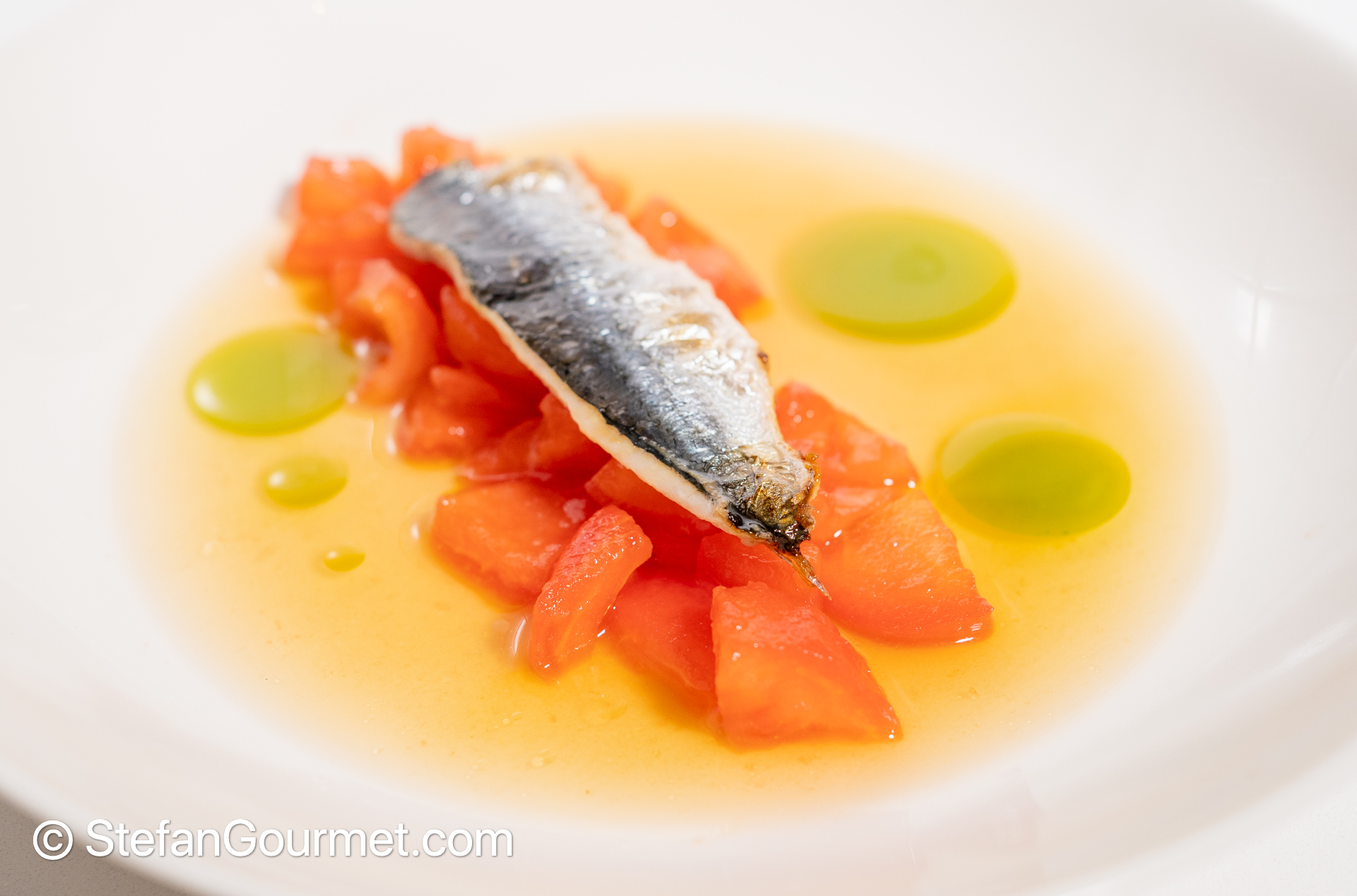 Grilled Sardine with Tomato Dashi and Tomato Concassé
