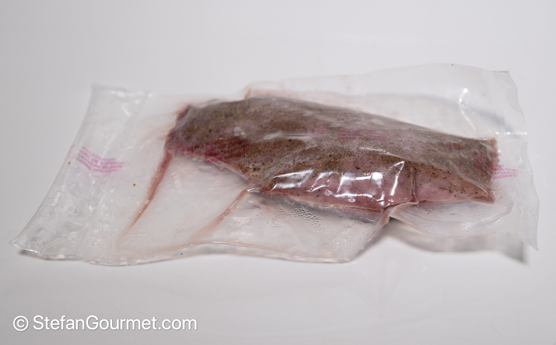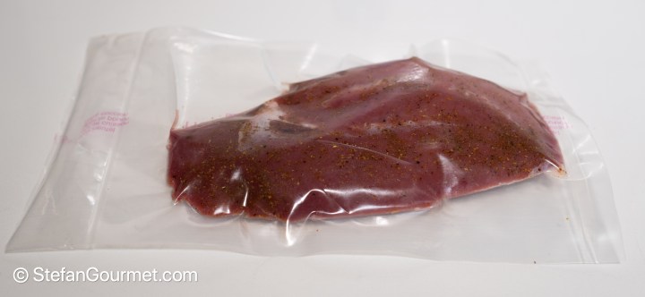 Season the meat with 1/2 teaspoon of table salt and 1/2 teaspoon of five spice powder, and vacuum seal. Reserve the skin.