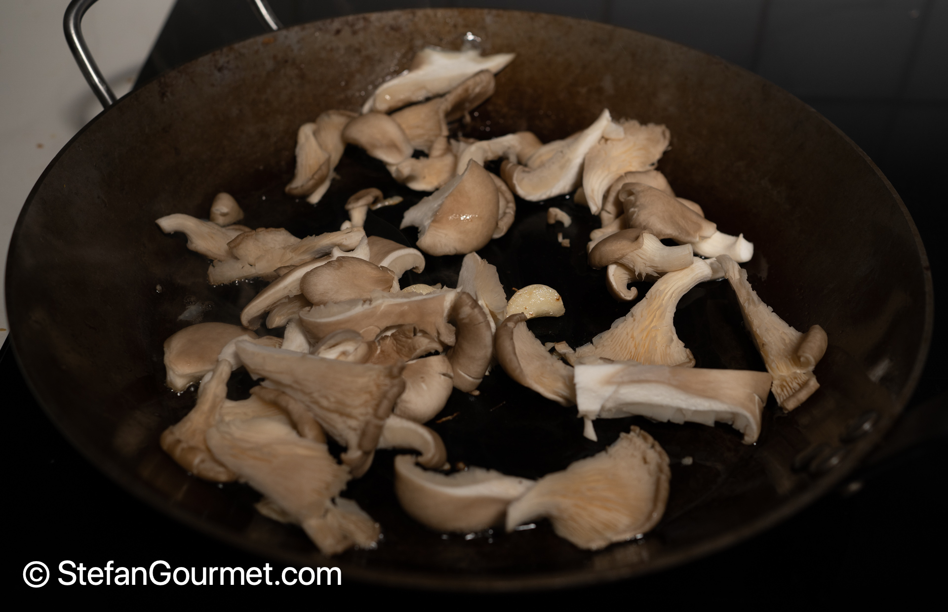 Stir fry the mushrooms until they are cooked and golden brown. Season the mushrooms with salt when they are done, not before.