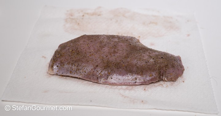 When the duck breast has been cooked sous vide, take it out of the bag and pat it dry with paper towels.