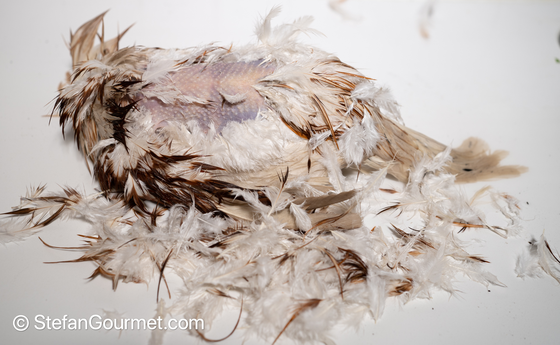 I did some googling and found this description helpful. To make the plucking easier, I submerged the birds in water of 65C/150F for a minute or so.