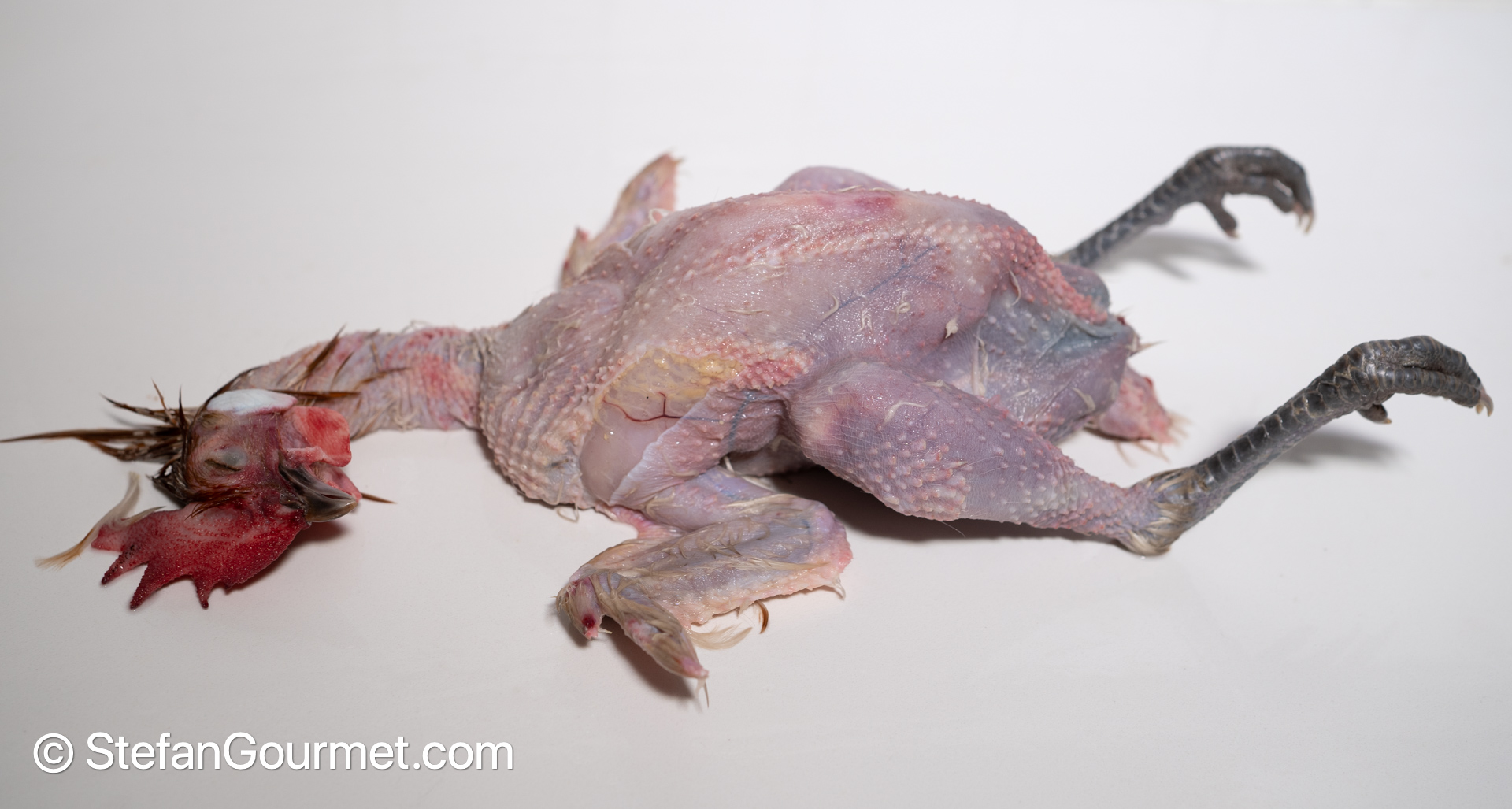 These roosters were of a small breed, as even though they were one year old and fully grown, after plucking and gutting they were only about 700 grams (1.5 lbs). That is less than half of the weight of the commercially available chickens that are 6-12 weeks old!