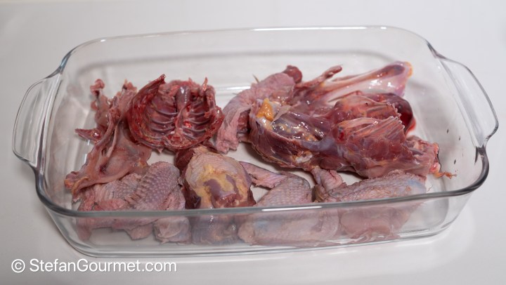 Arrange the carcass pieces in an oven dish…