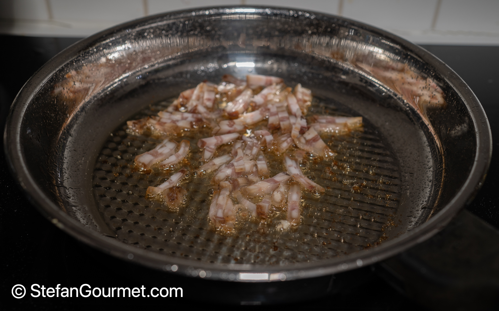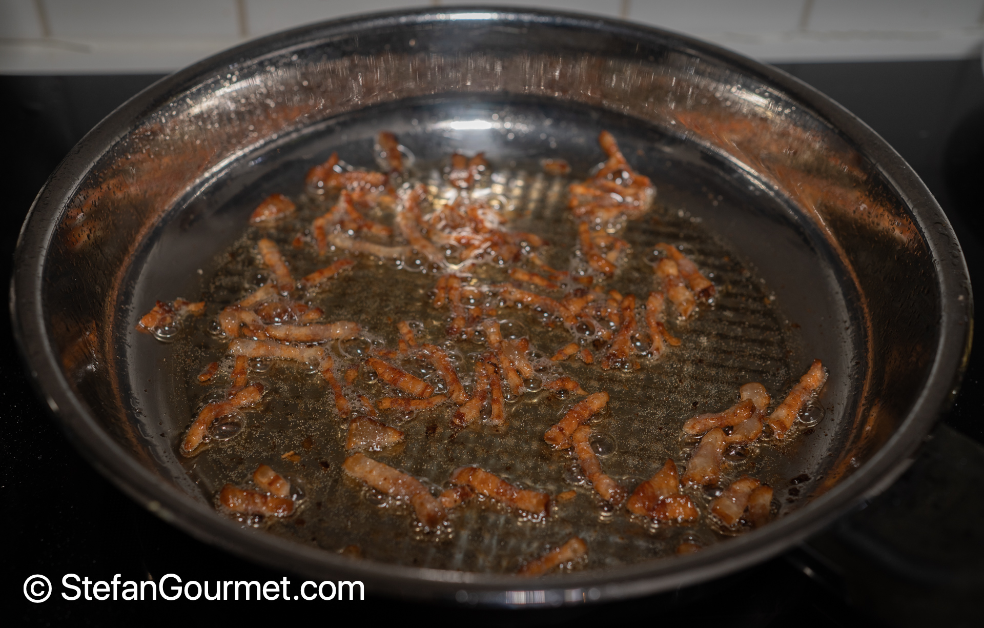 Cook until the pancetta is crispy…