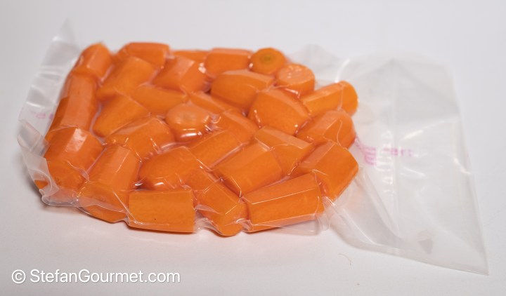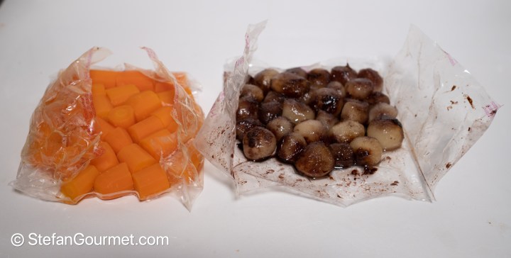 Take the carrots and onions out of their sous vide bags…