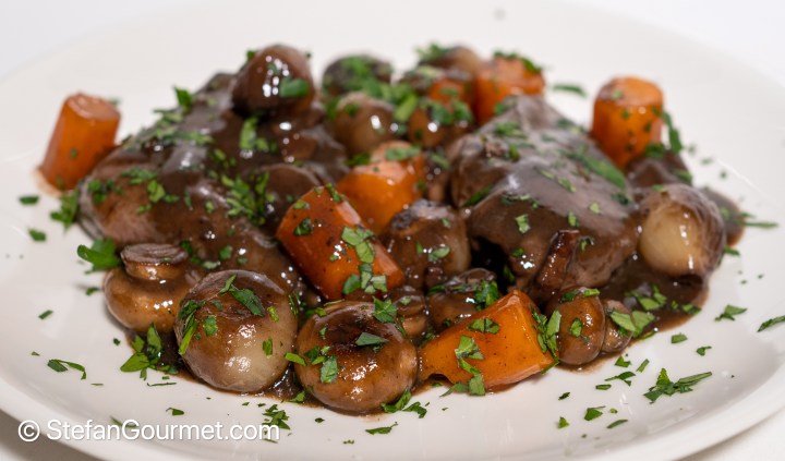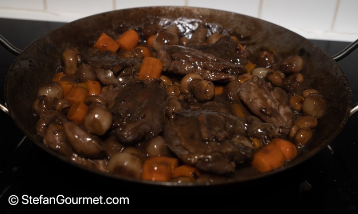 Oh Stefan – what a memory of a dish I used to prepare so often in the past and what a grand post breakfast tale to read on a Sunday morning ! Having defeathered a few birds in my time I was glad not to be doing the messy job . . . kudos to you for taking it on. Glad you were happy with the result . . . and you may just have reminded of the taste of the dish to prepare it myself in the near future . . . no arguments with your ingredient list whatsoever except an organic chicken, a full bottle of Merlot probably and the stovetop will be involved !! . . . and, just to say, am still enjoying clicking on ‘Stefan sings’ . . . a total surprise to me . . .