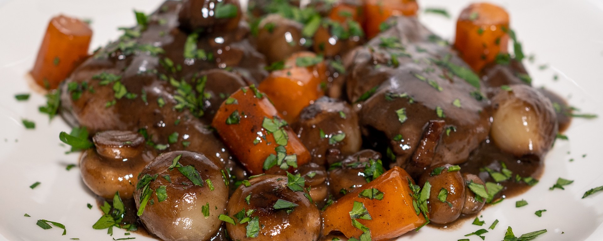 Coq au vin is a famous French dish of chicken stewed in red wine. As the name implies, the recipe was originally devised to prepare a rooster. As they were usually slaughtered when they were old and tough, it took the acid of the red wine and long and slow cooking to tenderize the bird. Nowadays, coq au vin is usually prepared with chicken. The chicken we use nowadays, even if it is organic, is usually only between 6 and 12 weeks old and therefore doesn’t require the long cooking to become tender. Because it is so young and has grown so fast, the chicken has less flavor than the old rooster used traditionally.