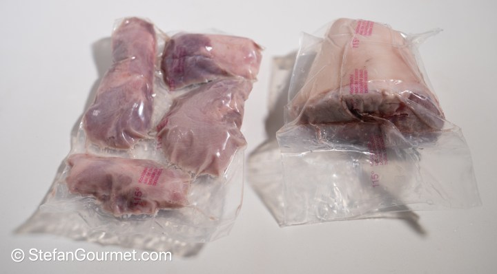 I wrote “or so”, because the exact timing is not important. Take out the pork ribs after the first day and chill them in cold water before refrigerating them. Reheat them for half an hour to come out of the sous vide together with the ham hock (reheating is only needed to liquify the juices in the bag).