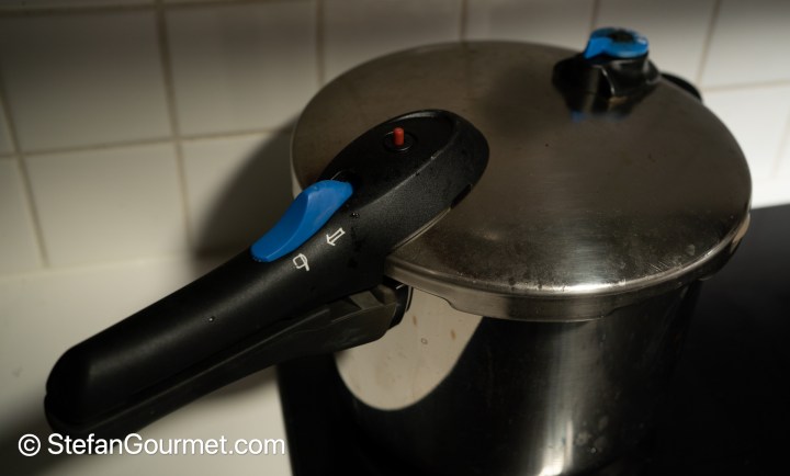Bring to pressure over high heat, reduce the heat, and pressure cook for 1.5 hours, or cover, bring to a boil, reduce the heat, and simmer for 3 hours.