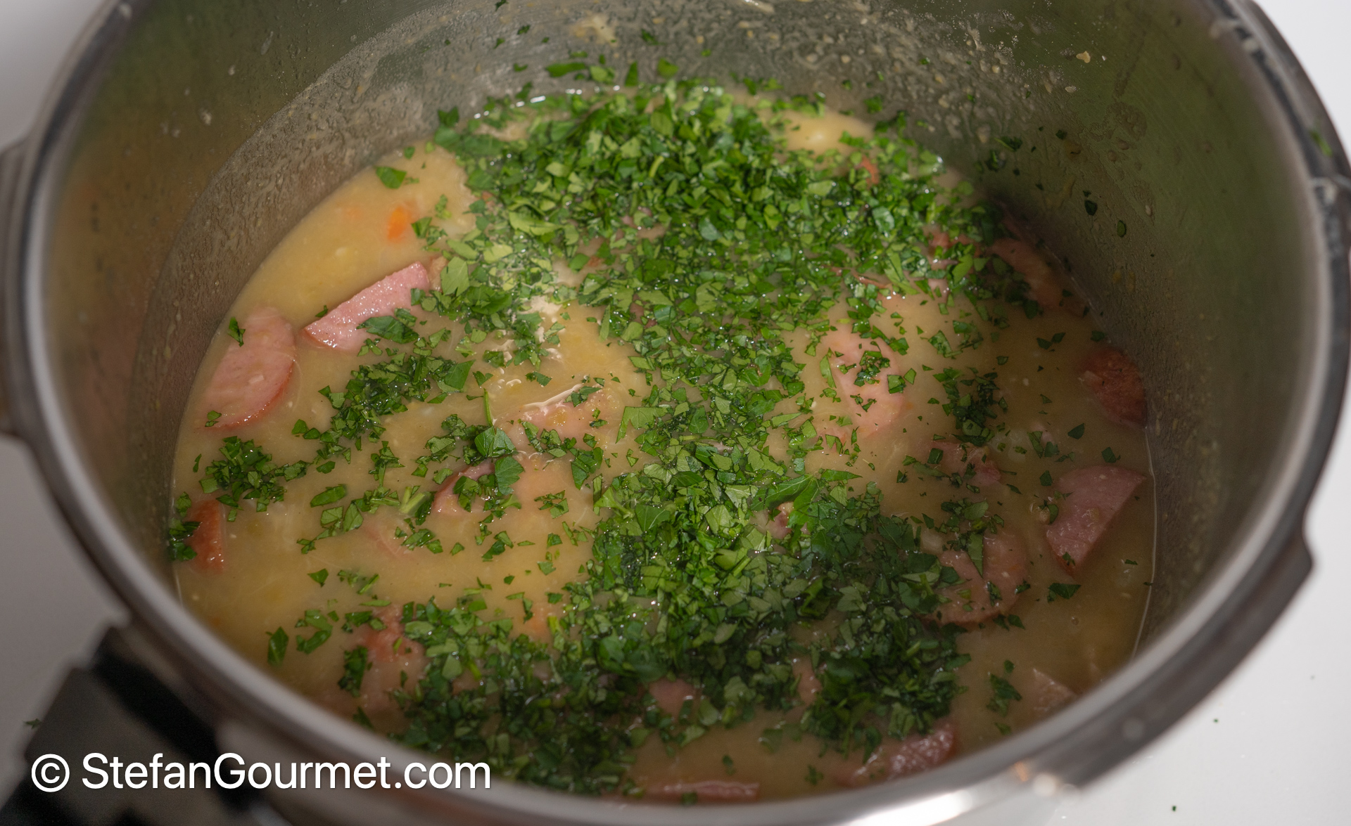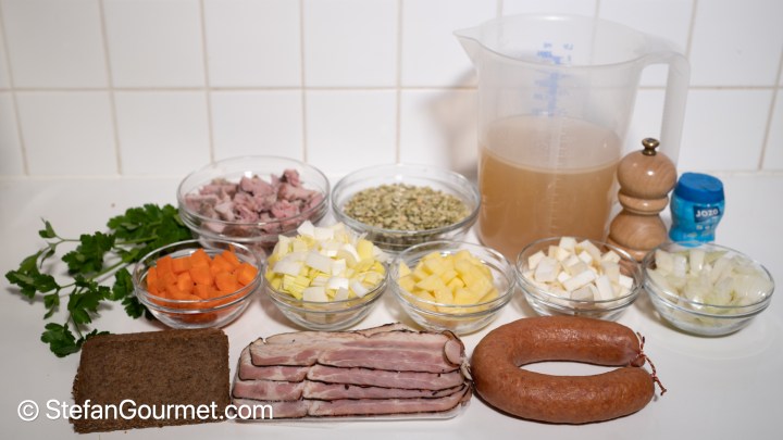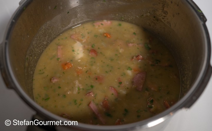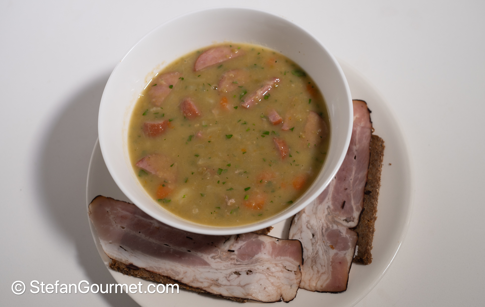 Oh, I may not prepare ‘hernesupp’, oops, ‘erwtensoep’ more than a 3-4 times a year but during the winter months it is quite a childhood favourite. I have quite a bit to learn from you as I basically prepare it when I discover an inviting ham hock . . . normally not adding any other meats. The other pork cuts perchance do not call out to me for inclusion but shall definitely add some rookworst for extra meat and smoky taste next time around 1 I take your point that cooking the hock in the soup draws much of its taste into the broth but that is where I personally prefer it to be . . . with our autumn around the corner after a cool summer methinks this will be on the stovetop soonest . . .