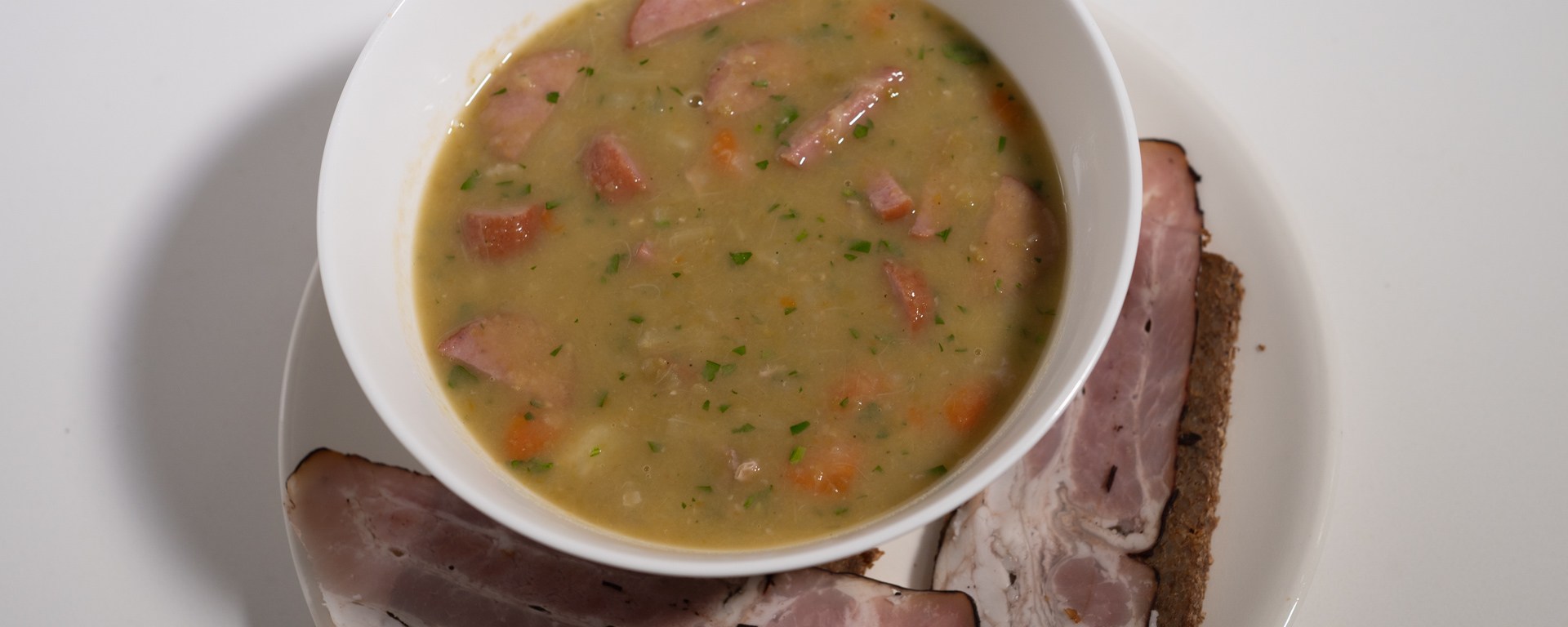 Someone in our Dutch sous vide group on Facebook asked if anyone had ever tried to make erwtensoep (Dutch pea soup) sous vide. I had not, and my first thought was that it didn’t make any sense, because the peas are supposed to be cooked until they fall apart. But then I thought there could be merit in cooking the pork sous vide. Now I don’t believe that sous vide is the answer to everything, but I also believe that you should always try before passing the verdict. And so I went ahead and prepared sous vide erwtensoep, or more precisely erwtensoep with sous vide pork. For the classic preparation without sous vide, click here. In that post I used pork belly, but it is even more traditional with ham hock (pork shank).