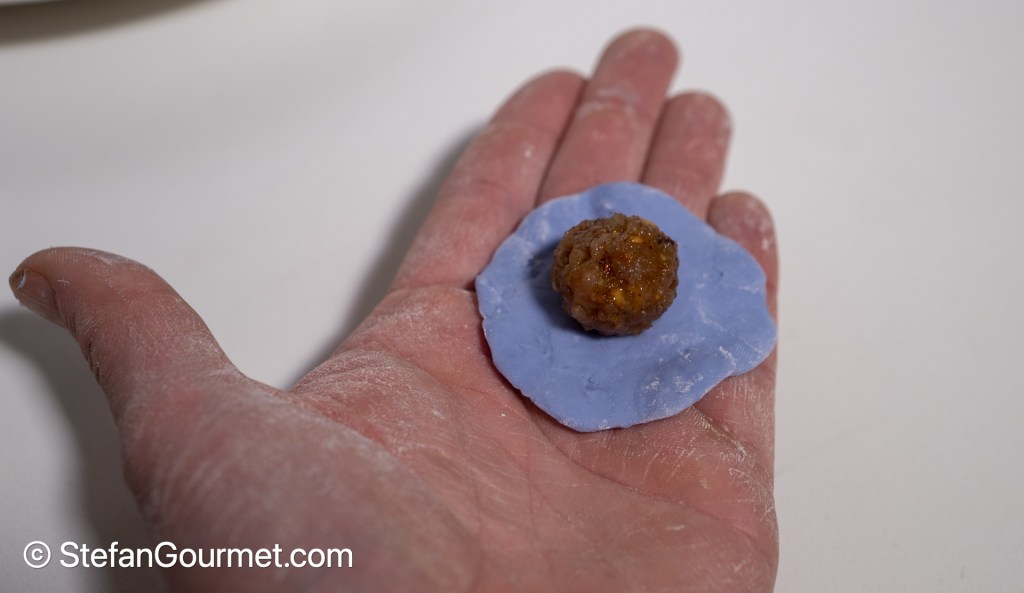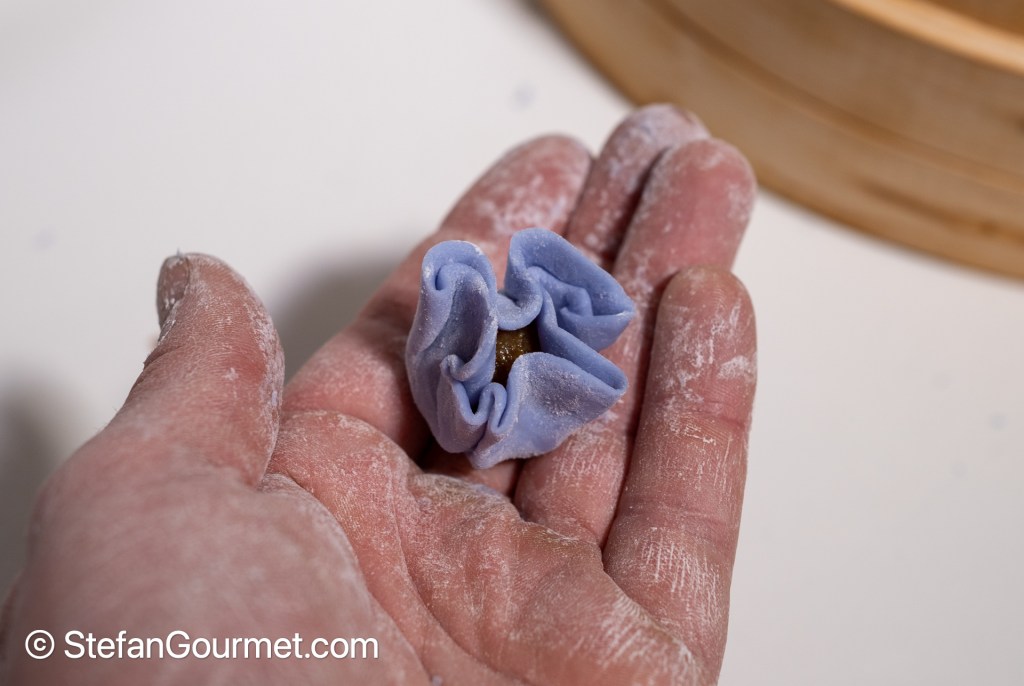 I’ve followed Hot Thai Kitchen’s recipe and if you are still planning to make these dumplings, I’d recommend to increase the amount of dough as her recipe has just the minimum amount you will need. If you make the balls of filling only slightly smaller and end up with more balls, you will not have enough dough. To make the flowers you are supposed to use bespoke Chor Muang tweezers, but you can get a decent enough result using regular tweezers.
