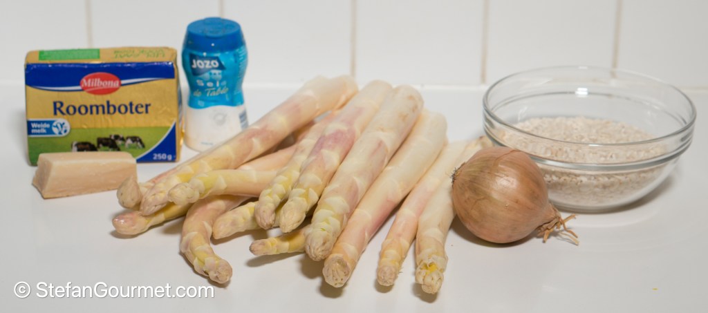 Lovely! I live in the southwest of Germany that is famous for asparagus. You can easily find on the market only the heads that are much less expensive. These are perfect for a risotto. Very tender, almost no waste and exactly the size we need for this dish.
