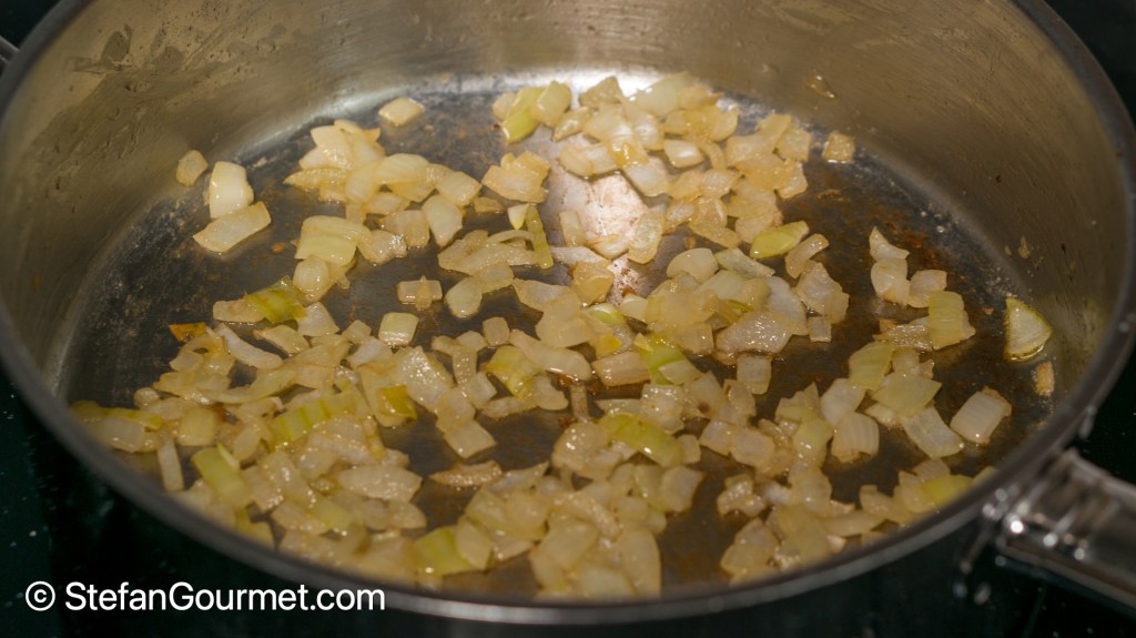 Stir over medium heat until the onion is soft and slightly golden, 5 to 10 minutes.
