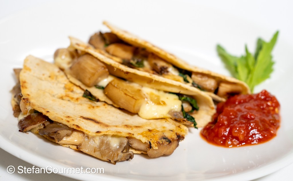 We love Mexican food too. It wasn’t all that long ago that Mexican food in Toronto was basically that horrible fast food tacos and deep-fried ice cream, fast forward 30 years and we have a lot of excellent, high-end Mexican restaurants, and there is one within walking distance to our house. I love quesadillas because they are quick and easy to make. I have made my own tortillas before, they are so much better than the soggy, mushy ones you can buy in stores.