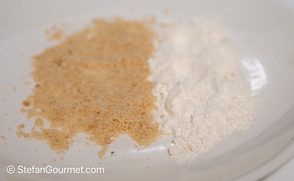 Combine the finely ground hazelnuts with an equal amount of flour…