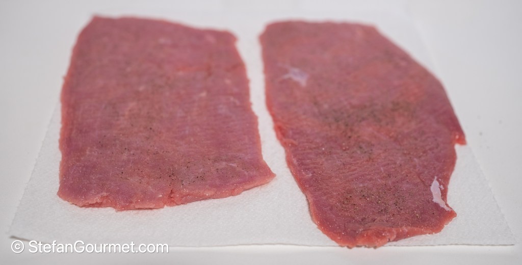Season the scaloppine with salt and freshly ground black pepper on both sides.