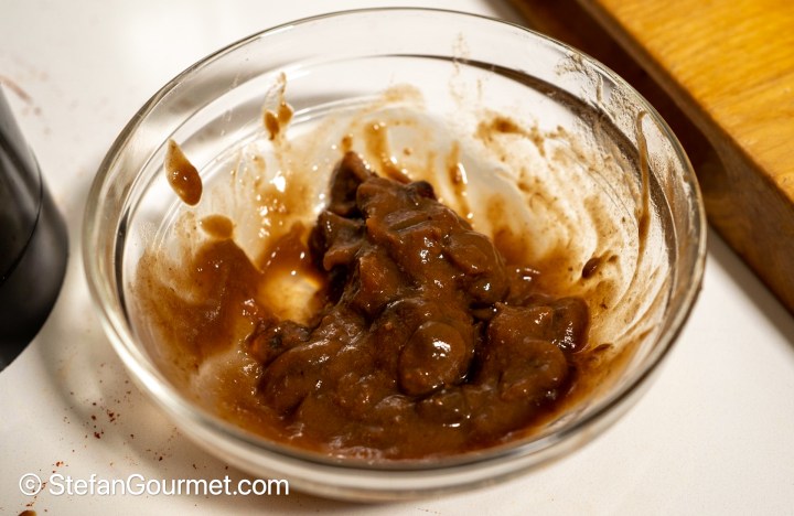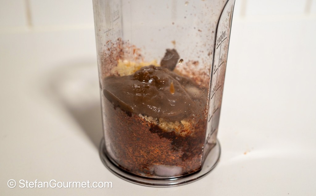 • 75 grams (stems and seeds removed, 16 to 20 large) dried chiles (I used guajillo)