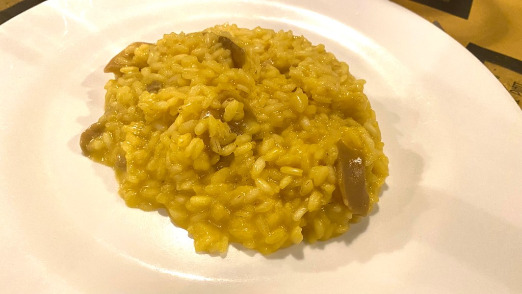 As primo we had a risotto alla longobarda, with porcini mushrooms, taleggio cheese, and saffron. The risotto was served perfectly al dente and about as ‘dry’ as I usually serve risotto (which is sometimes served more ‘wet’, which is called all’onda).