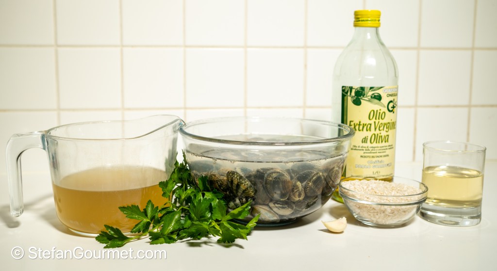 We love vongole and we love risotto, so risotto alle vongole hits all the right buttons. I opted to prepare it in bianco, without tomato, to allow the vongole to shine. The clams come with their own built-in stock, which I mixed with home made fish stock to add complexity and depth. As with many Italian recipes, this only requires a few ingredients. You could add half a teaspoon of chili flakes if you like it hot, but otherwise I wouldn’t mess with this.