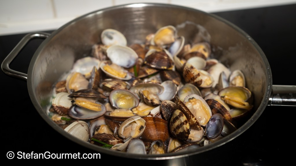 Cook until the vongole have opened. If some won’t open, discard them.